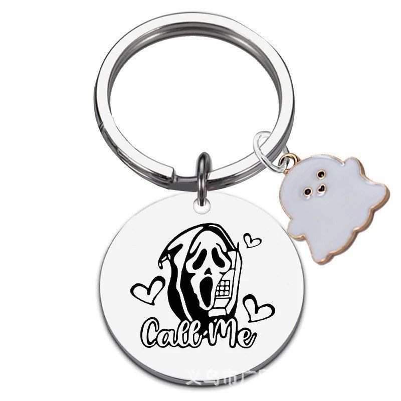Best Selling Halloween Stainless Steel Metal Cute And Funny Ghost Keychain Pendant Gift
