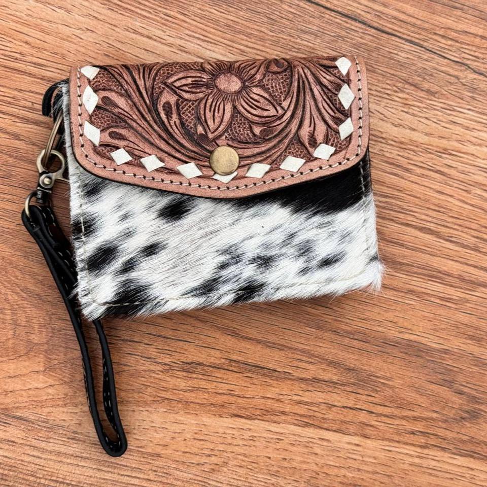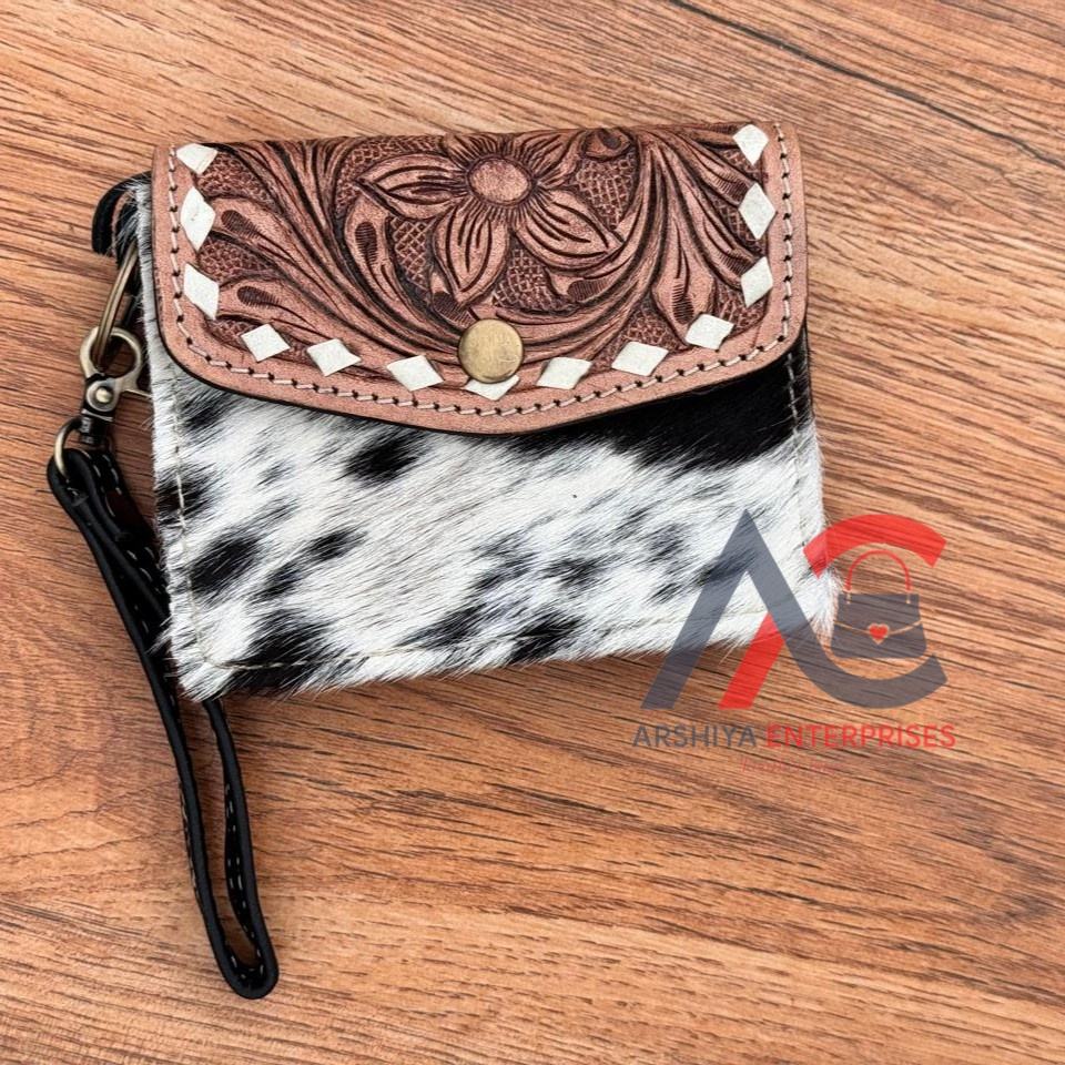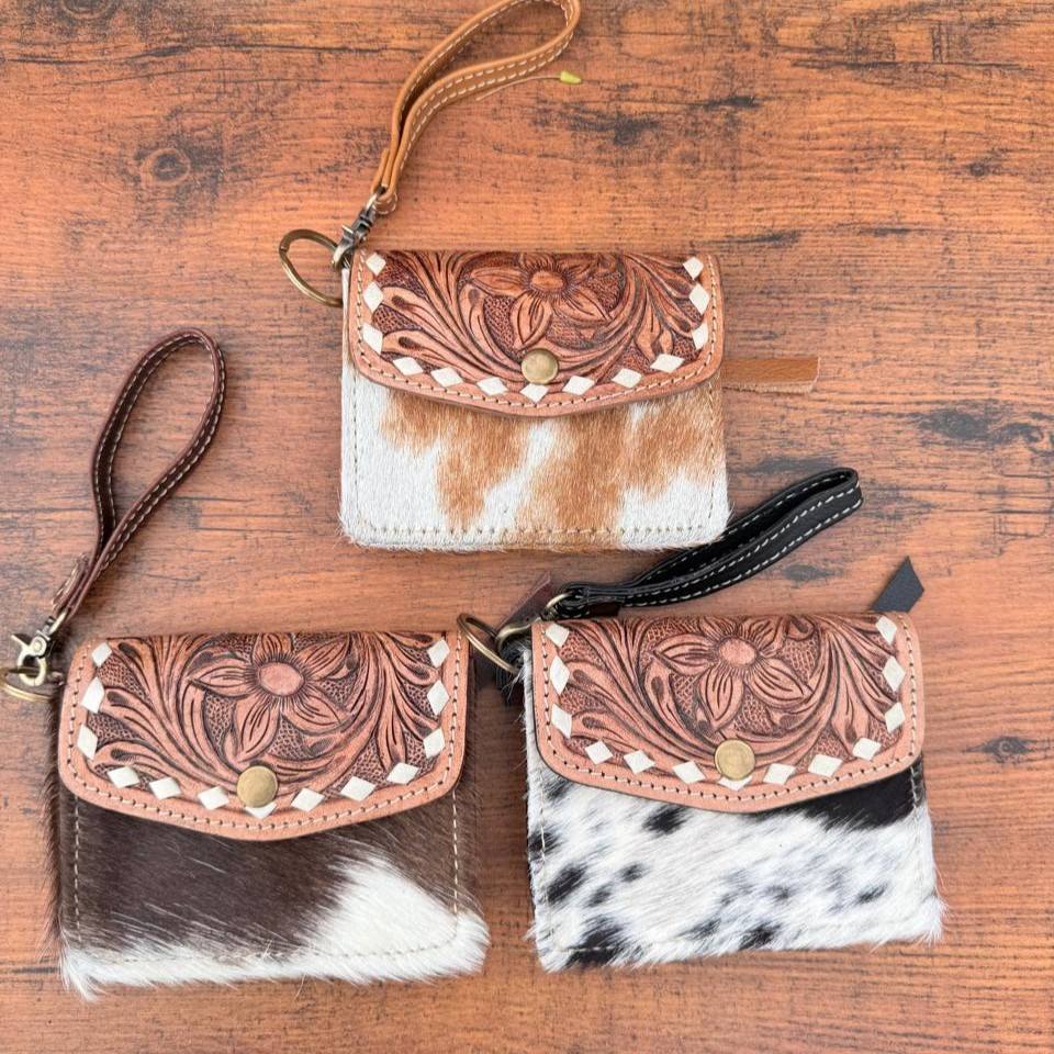กระเป๋าสตางค์ใบเล็กสำหรับผู้หญิงกระเป๋าใส่เหรียญทำจากหนังวัวแบบตะวันตกใช้หลายรูปแบบ