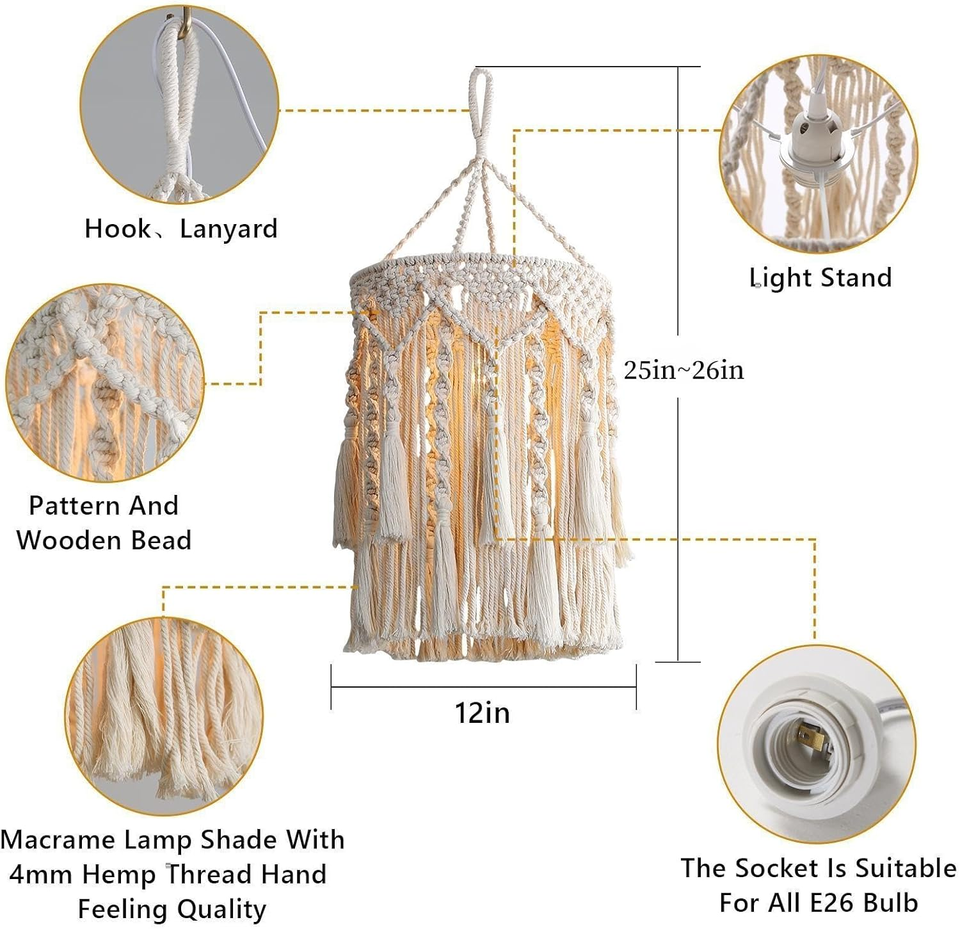เชือกคอตตอนทอด้วยมือสำหรับตกแต่งบ้านและโรงแรมโคมไฟ macrame สไตล์โบฮีเมียน