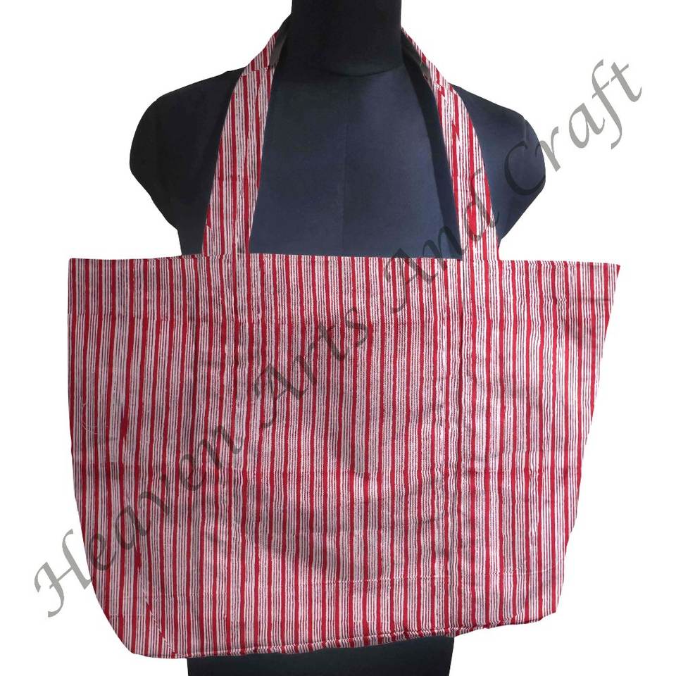 กระเป๋าโท้ทผ้าใบสำหรับผู้หญิงพิมพ์ลายบล็อกทำมือจุของได้มาก