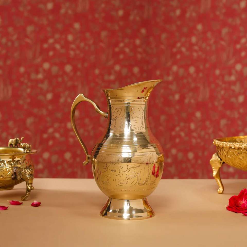เหยือกน้ำทองเหลืองแท้ทำมือขายดี พร้อมเหยือกน้ำดื่มแบบอินเดียดั้งเดิม สำหรับใช้ในบ้าน ครัว และโรงแรม