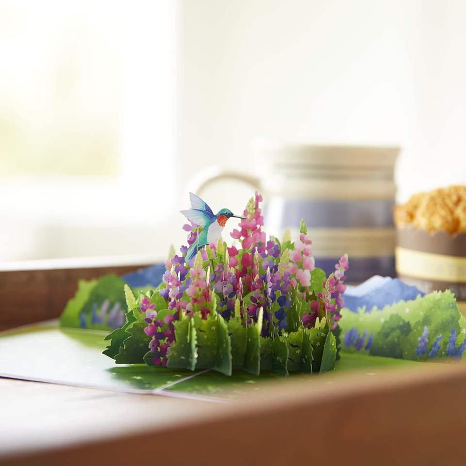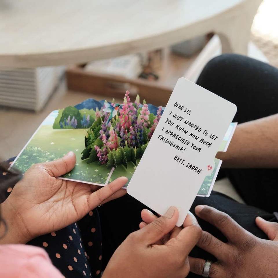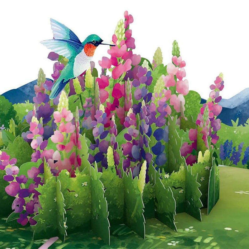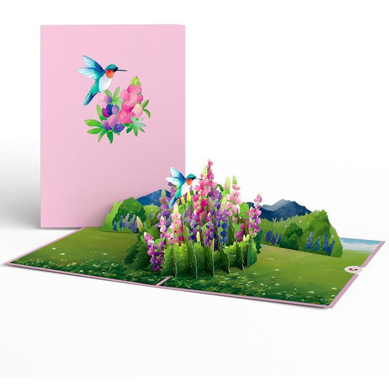 การ์ดอวยพรคริสต์มาสแบบป๊อปอัพ 3 มิติ ลายดอกไม้สีชมพูพร้อมนก ทำจากกระดาษ เป็นมิตรต่อสิ่งแวดล้อม ขายดีที่สุด