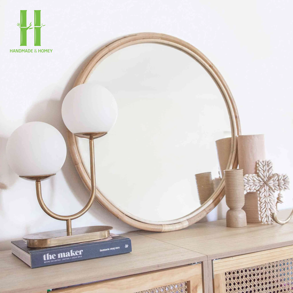 กระจกเงาสำหรับตกแต่งห้องนอนเด็กและทารกทำจากเวียดนามกรอบหวายดีไซน์ทันสมัยทนทานเป็นมิตรกับสิ่งแวดล้อม