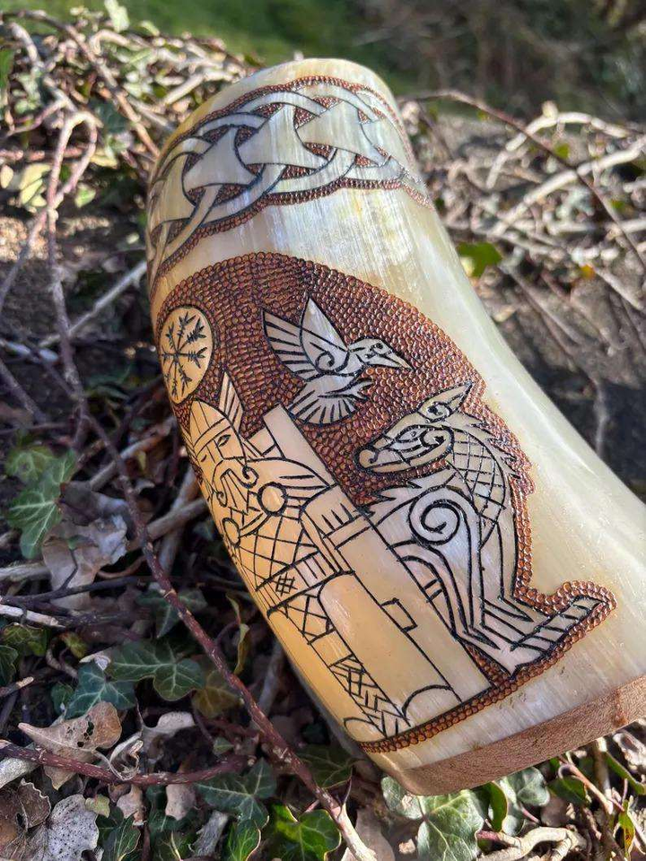 แก้วมัคทำมือยอดนิยม รักษ์โลก ทำจากเขาสัตว์สีดำ ด้ามจับแบบไวกิ้ง สำหรับดื่มเบียร์หรือเครื่องดื่มอื่นๆ สามารถปรับแต่งสีได้
