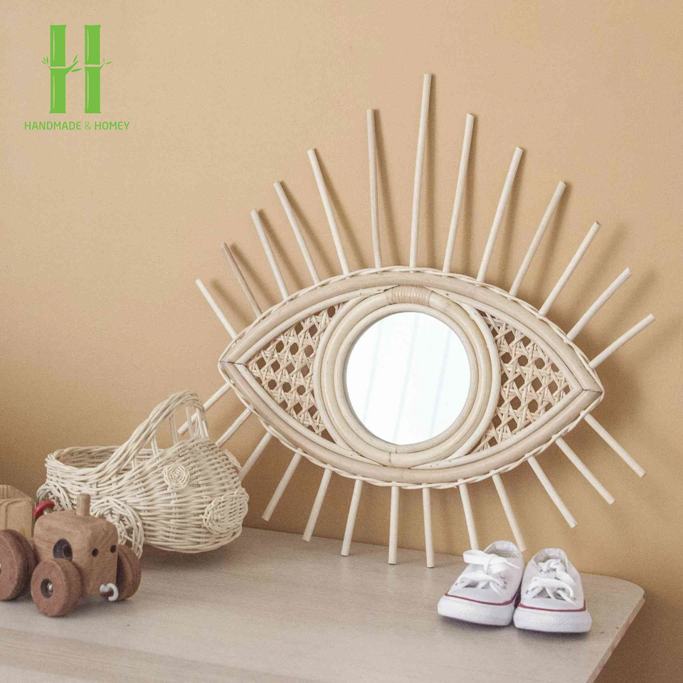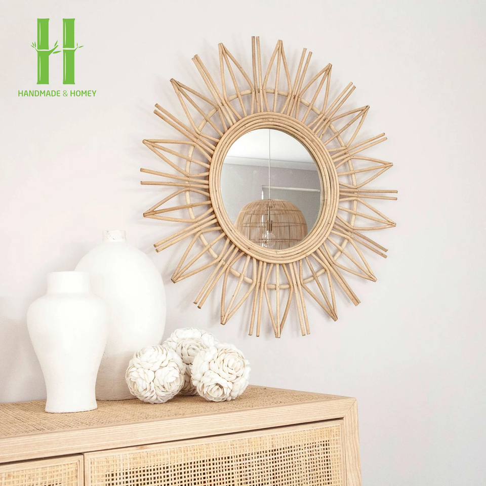 กรอบหวายตกแต่งผนังกระจกทำมือสำหรับตกแต่งบ้านดีไซน์อาร์ตเดคโคทำจากเวียดนาม