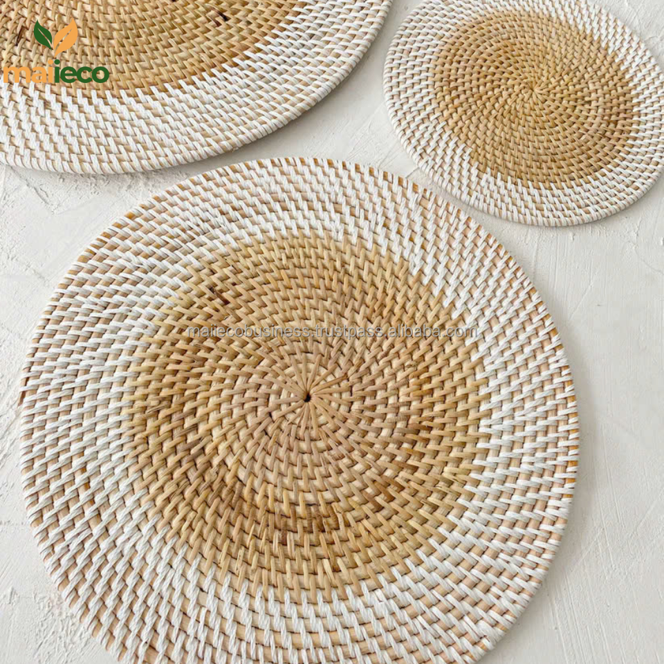 คำอธิบาย:แผ่นรองจานบนโต๊ะหวายสำหรับรับประทานอาหารงานแต่งงานที่บ้าน