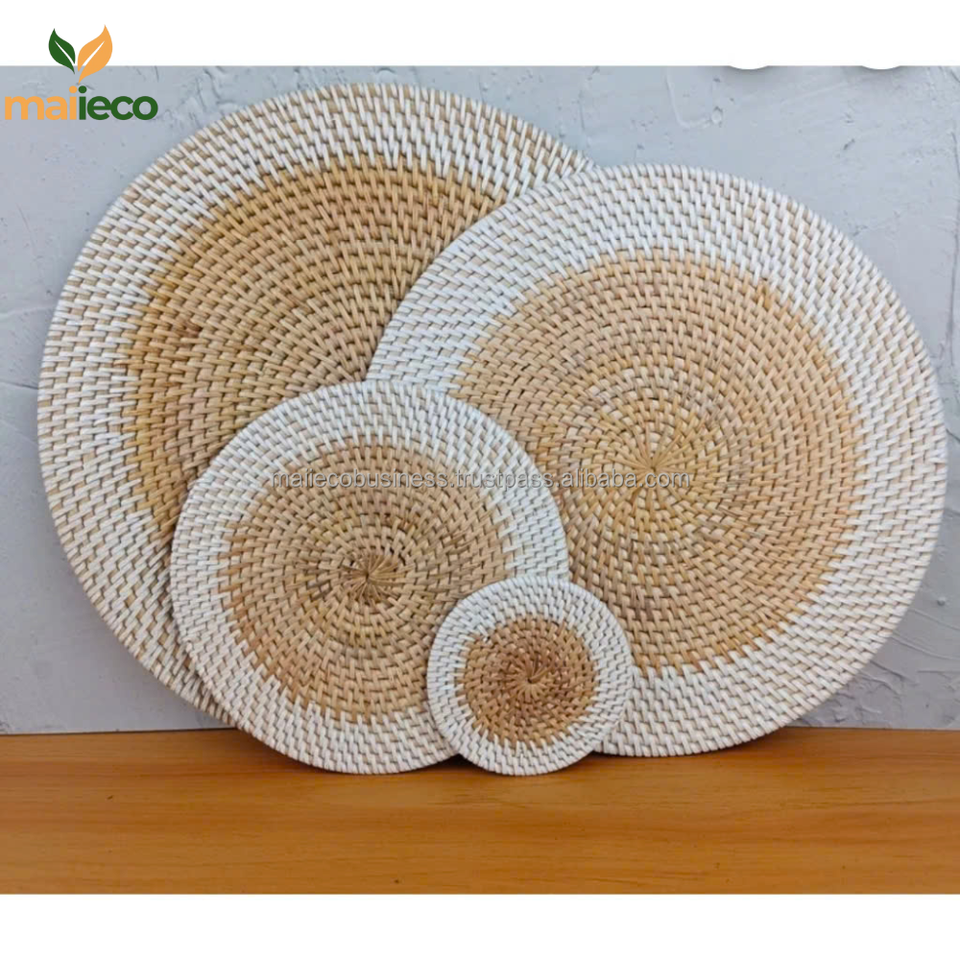 แผ่นรองจานหวายสไตล์โบฮีเมียนแบบม้วนแนวชนบทถาดรองแก้วสำหรับเครื่องครัวสไตล์คลาสสิกสำหรับงานแต่งงาน