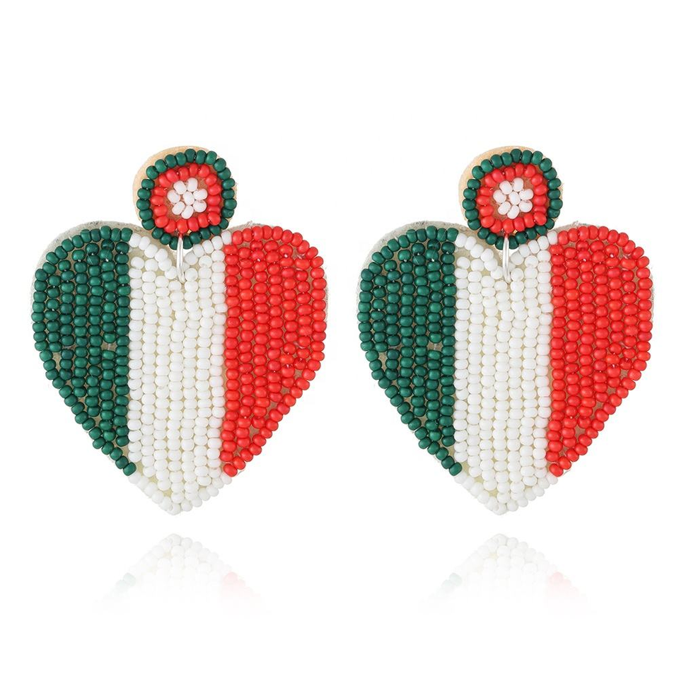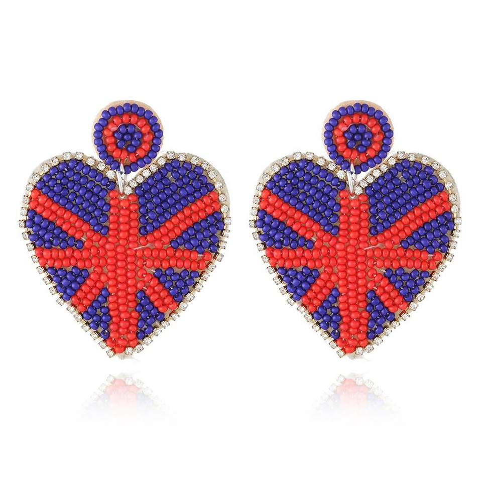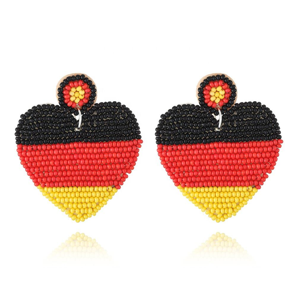 ต่างหูรูปหัวใจขายดี ดีไซน์ธงชาติฝรั่งเศส เยอรมัน อังกฤษ เครื่องประดับงานคาร์นิวัล พร้อมลายกุ๊กกี้เคลือบผิวอย่างดี