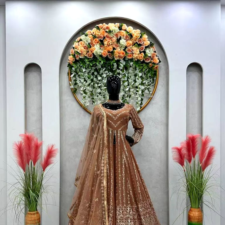 ชื่อผลิตภัณฑ์:ด้าย georgette faux ทำงานด้านบน lehenga กับ dupatta