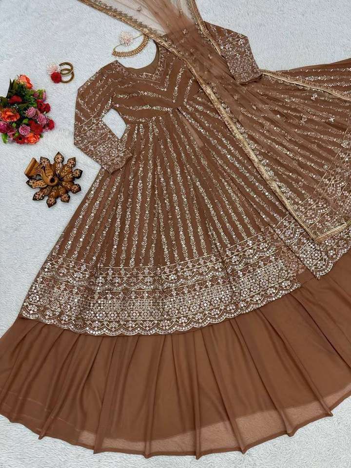 ด้าย georgette faux ทำงานด้านบน lehenga กับ dupatta