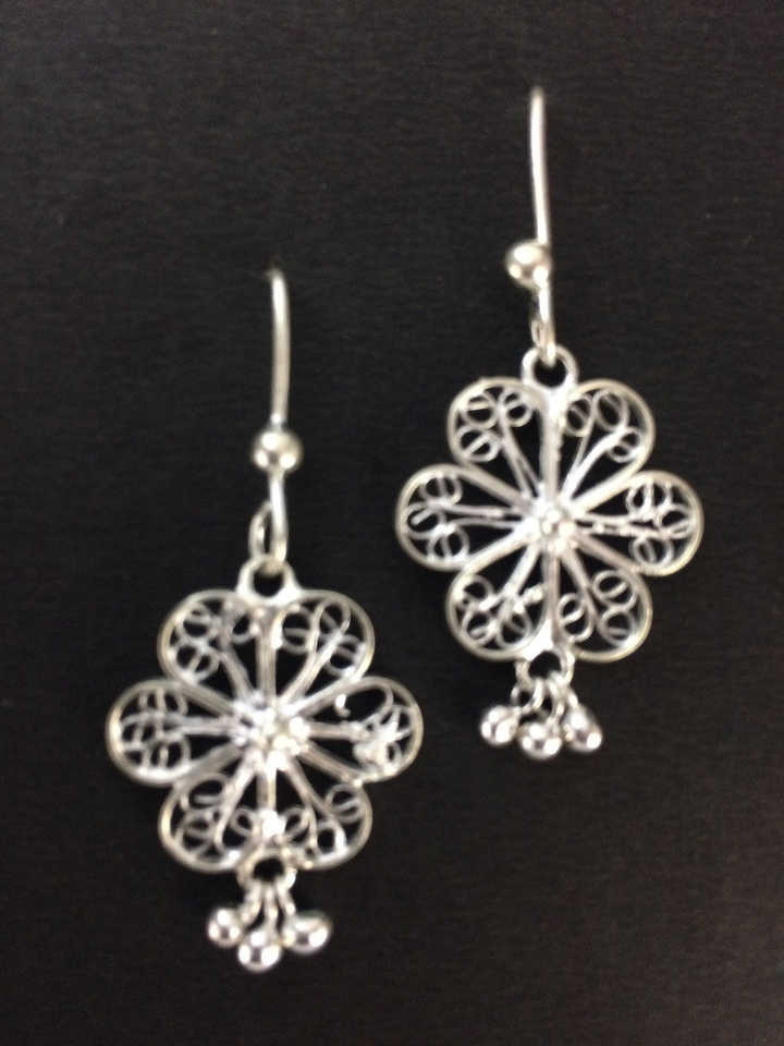 ต่างหูเงินแท้ลายดอกไม้คลาสสิคคุณภาพสูงขายดี รุ่น Silver Filigree ชุบเงิน สำหรับผู้หญิง คุณภาพสูง แฟชั่นอินเดียแท้ๆ