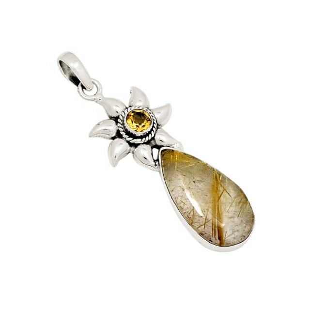 ขายดีที่สุด925เงินสเตอร์ลิงสีทองประดับพลอยหลายจี้อัญมณีราคาแพงเครื่องประดับที่ดีจี้ตัดเจ้าหญิงวินเทจของขวัญ
