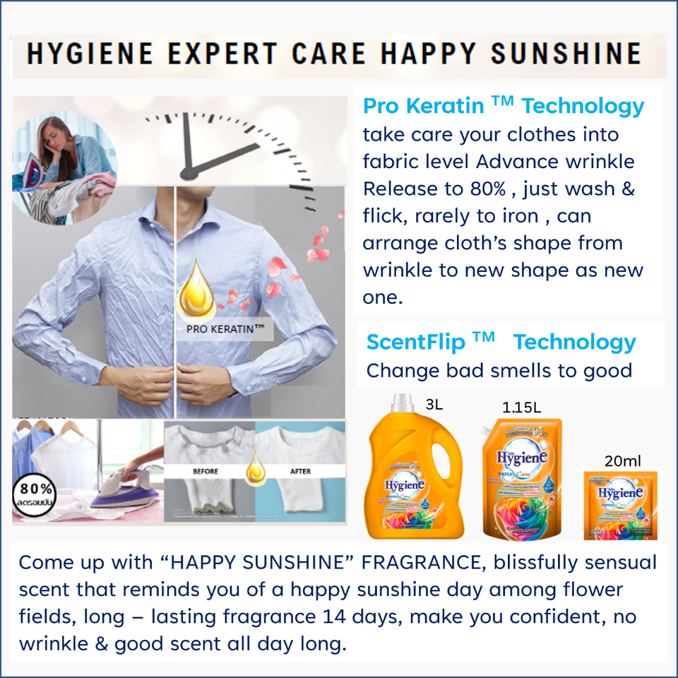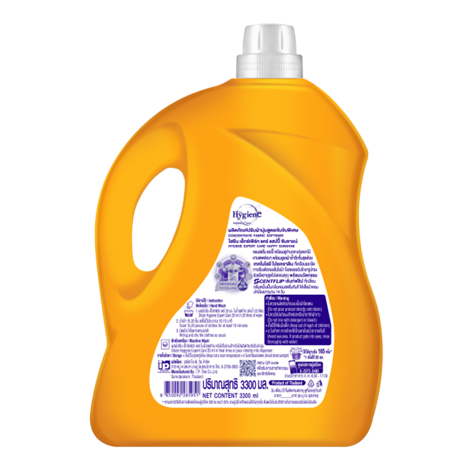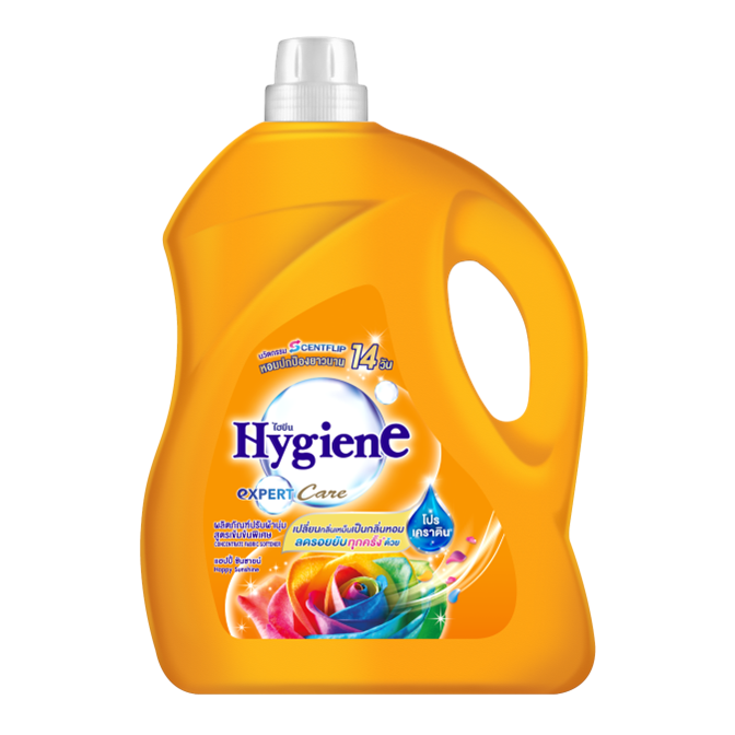 น้ำยาปรับผ้านุ่มสูตรเข้มข้น คุณภาพสูง กลิ่นหอมติดทนนาน ด้วยการดูแลอย่างมืออาชีพด้านสุขอนามัย แฮปปี้ ซันไชน์ 3300 มล.
