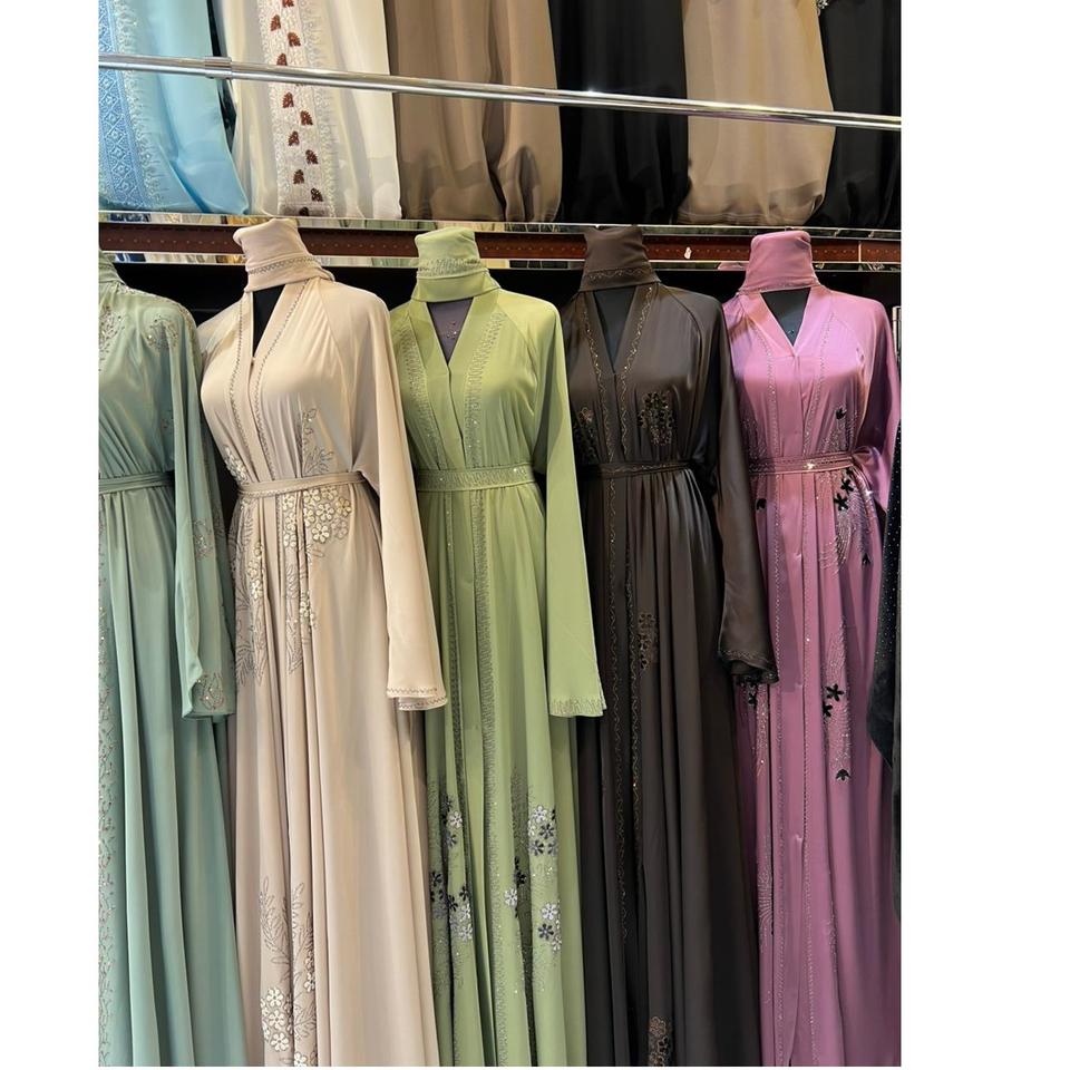 Best Selling High Quality Handmade Women Beaded Abaya Long Sleeve Vintage Modest Wear Decorative Beading Premium Nida Material