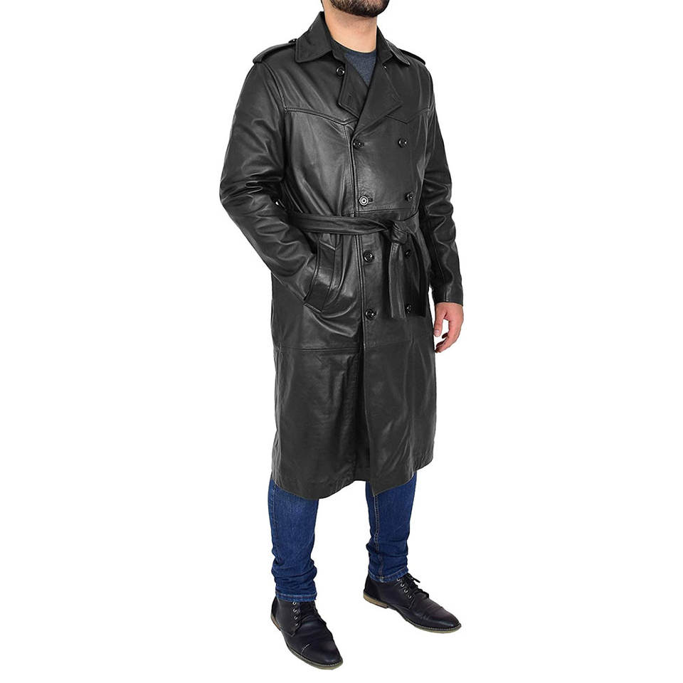 เสื้อโค้ทยาวหนังแท้สำหรับผู้ชาย