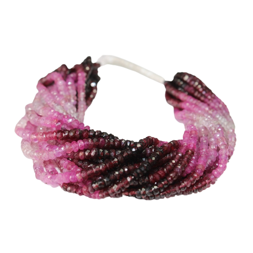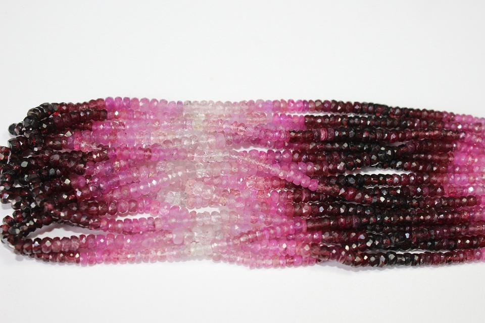 สายหินทับทิมสีชมพูเงางาม4มม. คุณภาพสูงสำหรับทำเครื่องประดับผลิตในอินเดีย