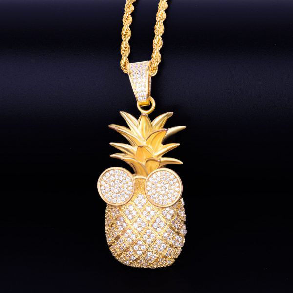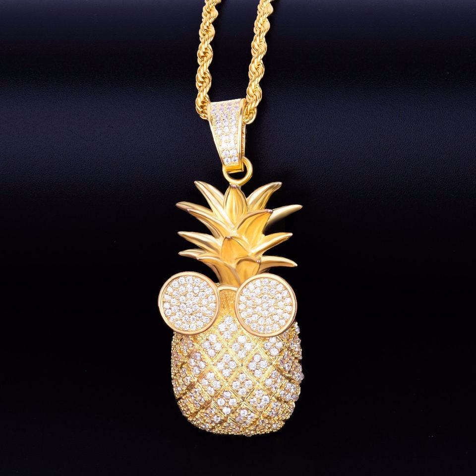 จี้เพชรประดับสไตล์ฮิปฮอปสับปะรด10 KT พร้อมของขวัญวันเกิดสีทองแท้10 KT จากอินเดีย
