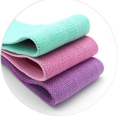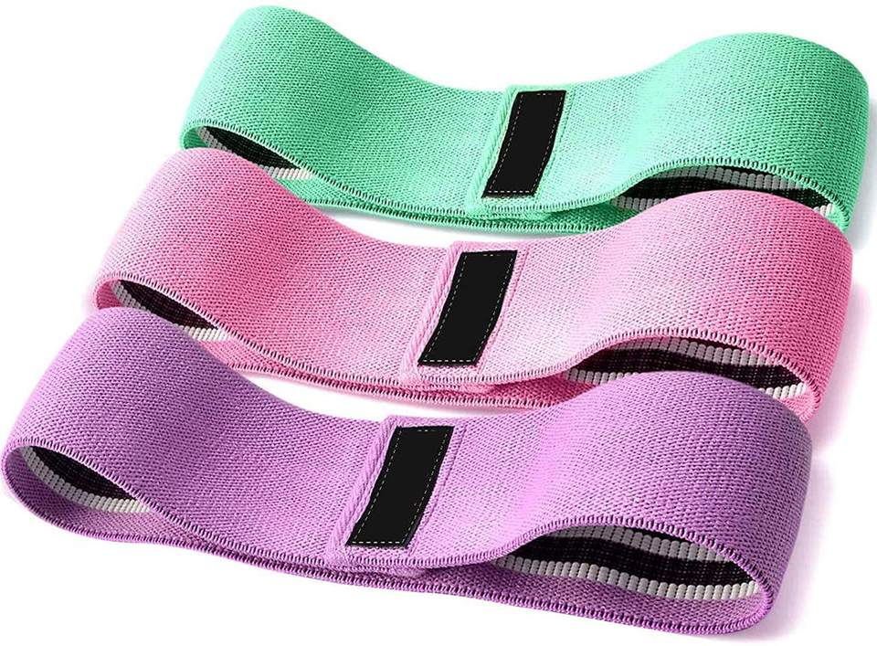 สายรัดสะโพกสำหรับฝึกออกกำลังกายโยคะที่บ้านมีขนาดเท่ากันแต่มีปอนด์ต่างกันทำจากยาง