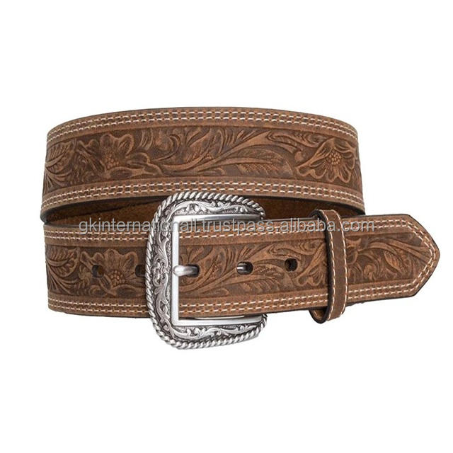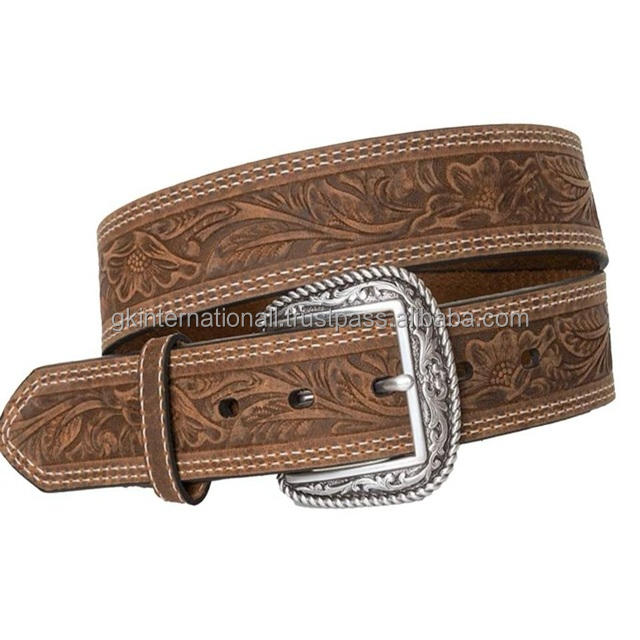 เข็มขัดหนังคาวบอยลายนูนลายดอกไม้สำหรับทุกเพศเข็มขัดหนังสไตล์ตะวันตกลายนูนสไตล์ร้อนแรง