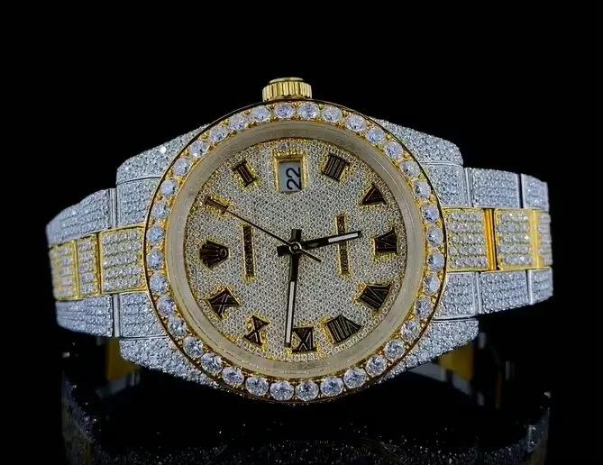 นาฬิกาเพชรโมอิสซาไนต์ชุบทองคำขาวขายดีที่สุดสำหรับผู้ชาย ดีไซน์หรูหรา ประดับเพชรเต็มเรือน ตัวเรือนสแตนเลสสตีล มีจำหน่ายแล้ว