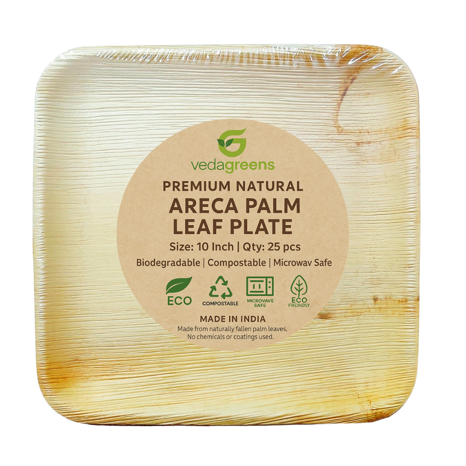 จานสี่เหลี่ยมจากใบปาล์มอะรีกา ย่อยสลายได้ ผลิตในอินเดีย ขายดี มีหลายขนาดให้เลือก เหมาะสำหรับเป็นของขวัญทางธุรกิจ หรือใช้สำหรับแคมป์ปิ้ง