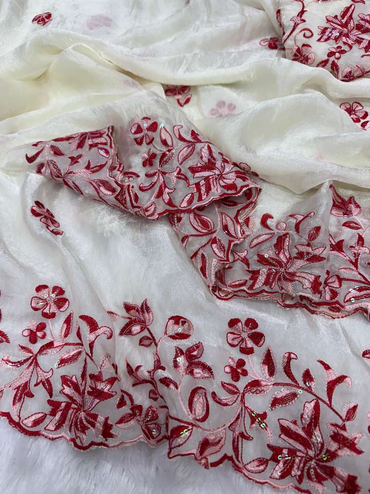 บอลลีวู้ดอินเดียชุดพื้นเมืองแฟนซีชุดเดรสผ้าไหมสีขาวส่าหรีทันสมัยที่สุดสินค้าส่งออกล่าสุดสุดพิเศษ