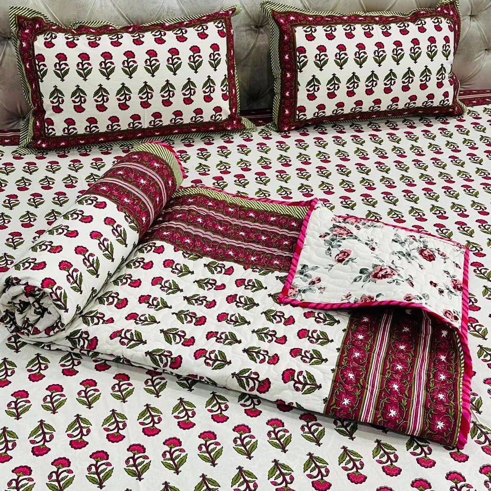 ชุดเครื่องนอนผ้าฝ้ายพิมพ์ลายดอกไม้สไตล์อินเดียผ้าปูที่นอนแบบทำมือลายดอกไม้ทันสมัยปลอกหมอน2ใบ