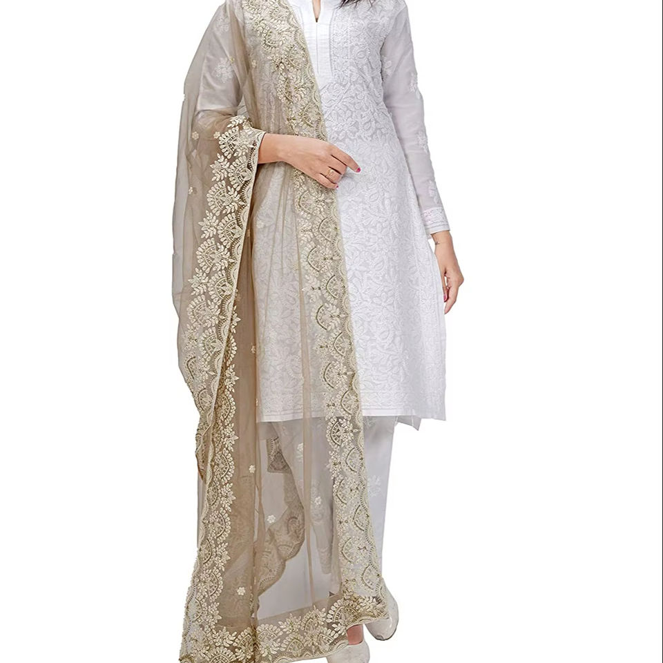 Best Selling Indian Pakistani Beautiful Designer Net Fabric Premium Dupatta Fancy Embroidery Work Wedding Traditional Women Wear