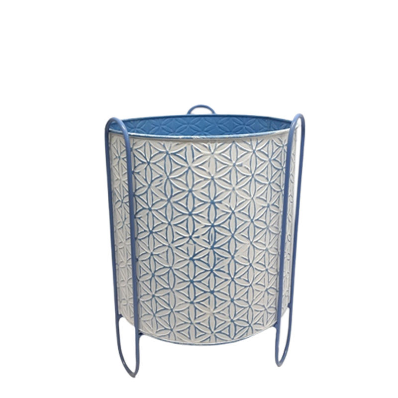 กระถางเหล็กทรงกลมพร้อมขาตั้งกระถางดอกไม้สีฟ้าสำหรับตกแต่งบ้านและงานแต่งงาน