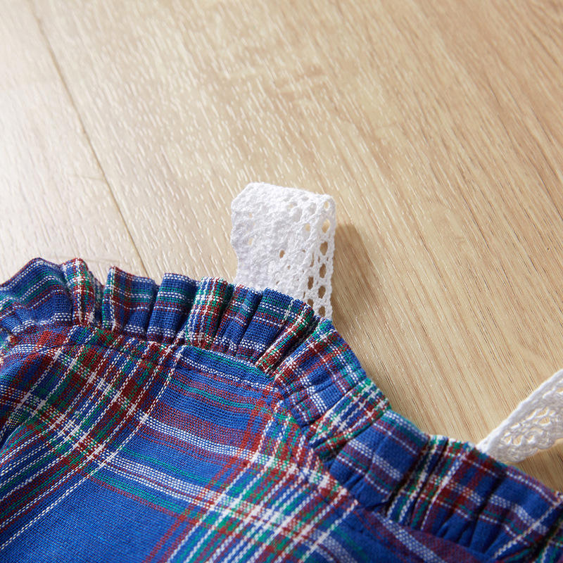 สินค้าขายดี ชุดเดรสเด็กผู้หญิงสไตล์เกาหลี ลายสก็อต แต่งลูกไม้ คอ halter สำหรับฤดูร้อน ลายเค้ก ลูกไม้ แบบเจ้าหญิง