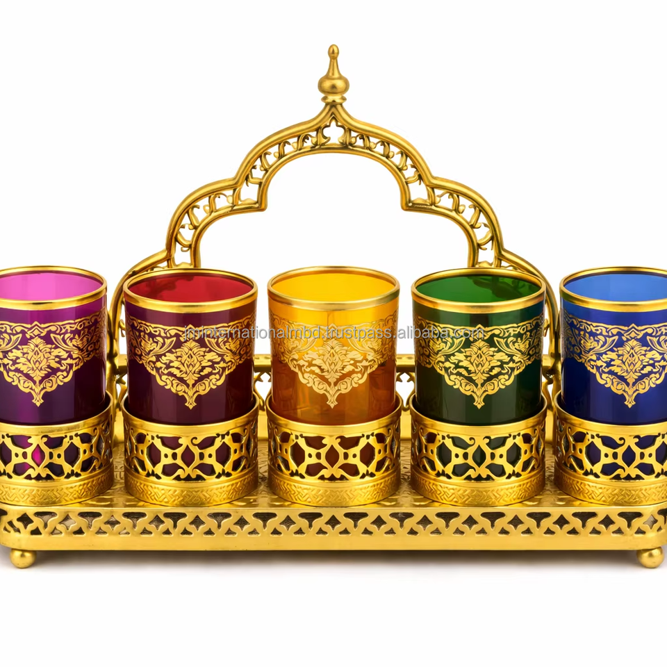 ชุดน้ำชาโมร็อกโกรอยัล JM INTERNATIONAL รุ่นขายดี 6 แก้ว พร้อมที่วางอะลูมิเนียมอัลลอยด์สีทอง ผลิตในอินเดีย