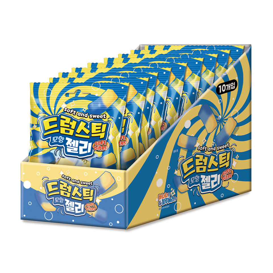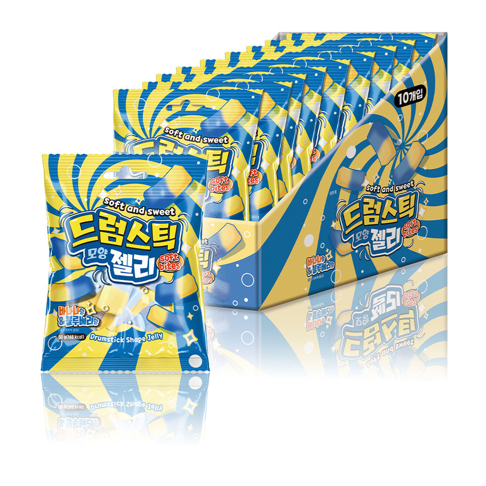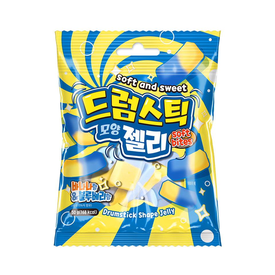 เยลลี่บลูเบอร์รี่กล้วยรสยอดนิยม 50 กรัม รูปทรงแท่งกลอง ขนมหวานเกาหลี บรรจุในถุง