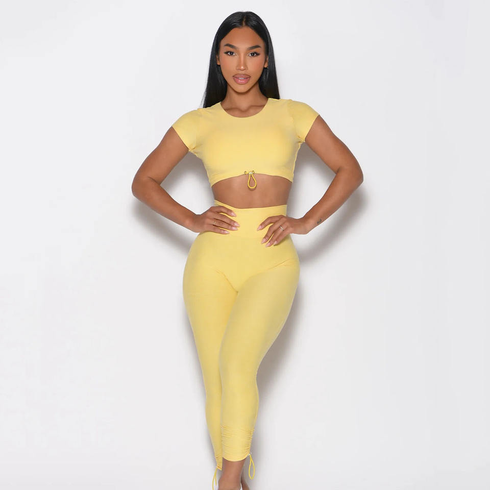 ชุดโยคะขายดีสำหรับผู้หญิง แบบสองชิ้น เอวสูง ผ้าเนื้อนุ่ม ระบายอากาศได้ดี เป็นมิตรต่อสิ่งแวดล้อม