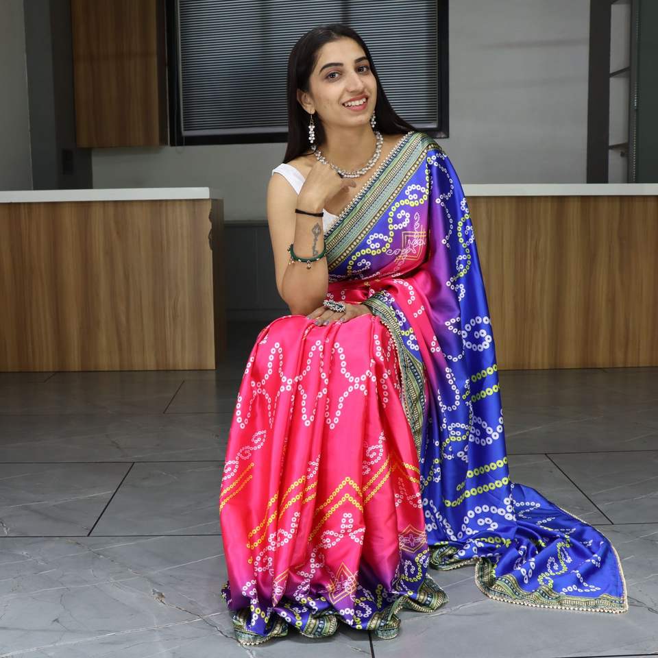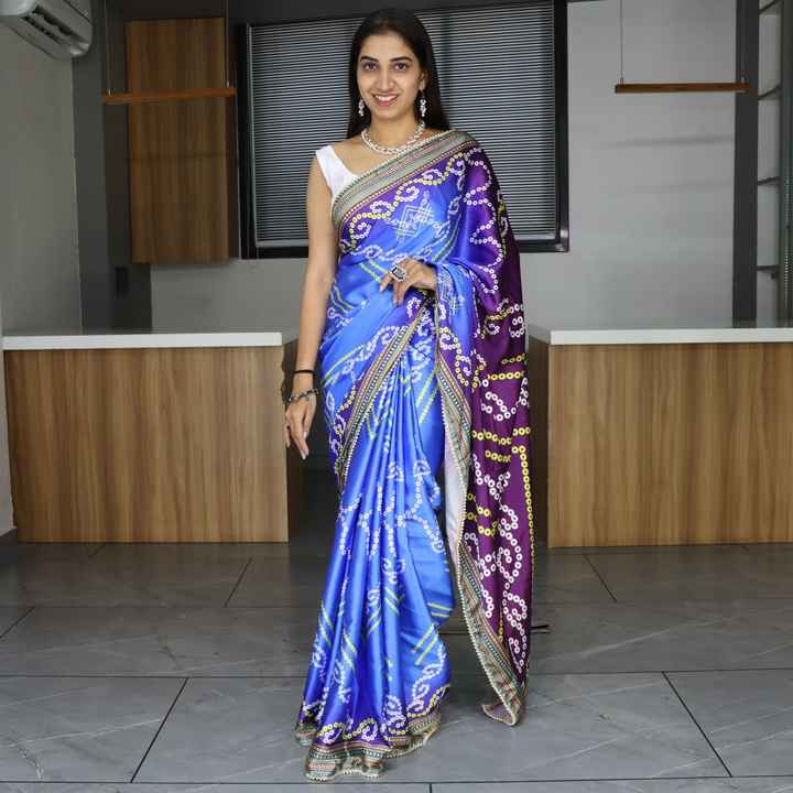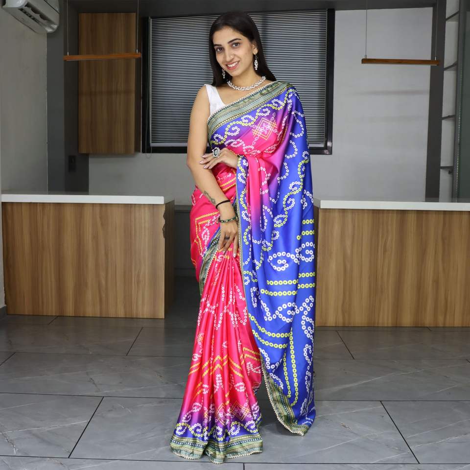 ผ้าจอร์เจียน้ำหนักเบาพิมพ์ลายหรูหราพร้อมใส่ส่าหรีสำหรับผู้หญิงและเด็กผู้หญิง
