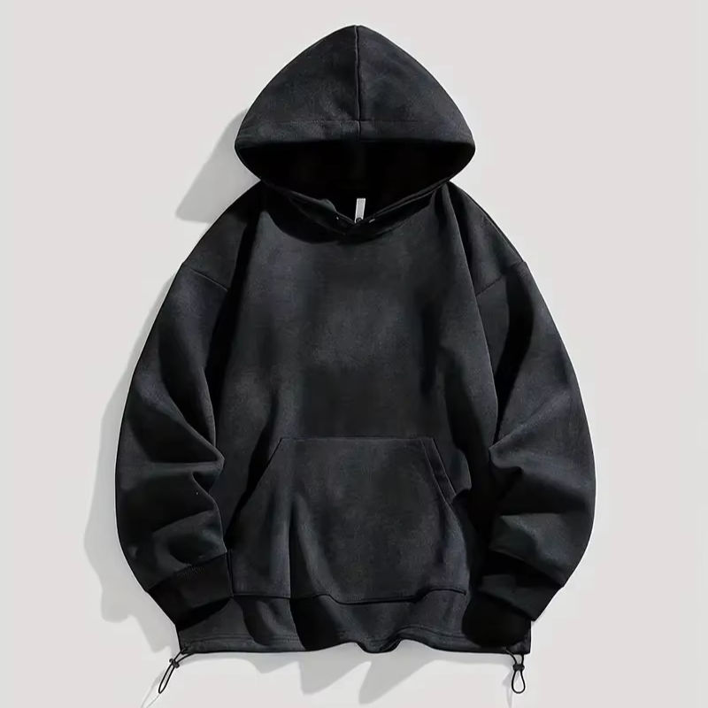 เสื้อฮู้ดแขนยาวของผู้ชายทำจากผ้าฝ้ายผสมย้อมสีล้วนสีดำและหลากสีสำหรับฤดูหนาว