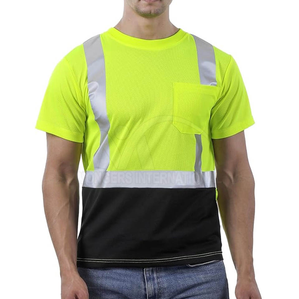 เสื้อยืดทำงานแบบกำหนดเองขายดี ระบายอากาศได้ดี ได้รับการรับรองมาตรฐาน CE ผ้าโพลีเอสเตอร์สะท้อนแสง ราคาส่งถูก