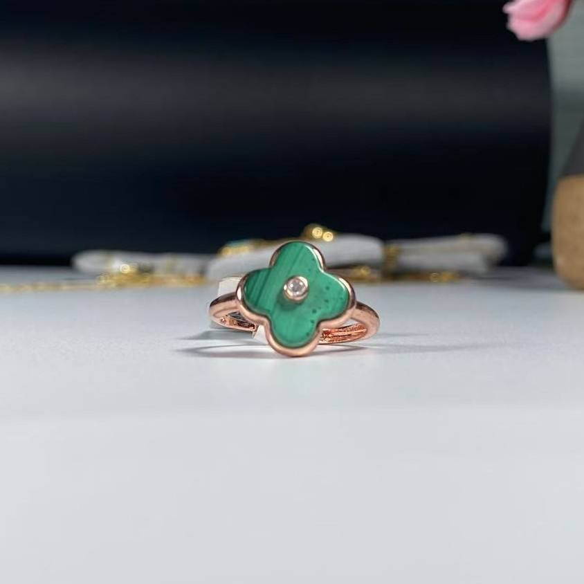 แหวนโคลเวอร์4แฉกมาลาไคท์925หรูขนาดเล็กสไตล์คลาสสิก