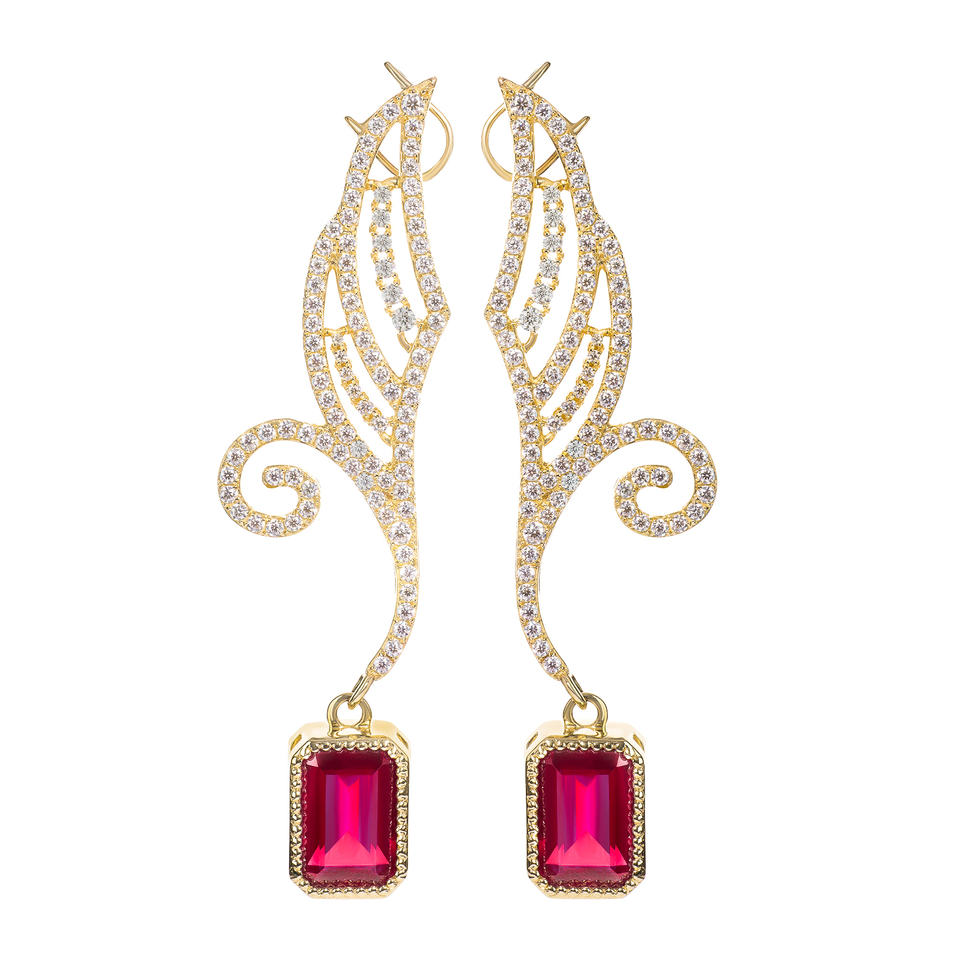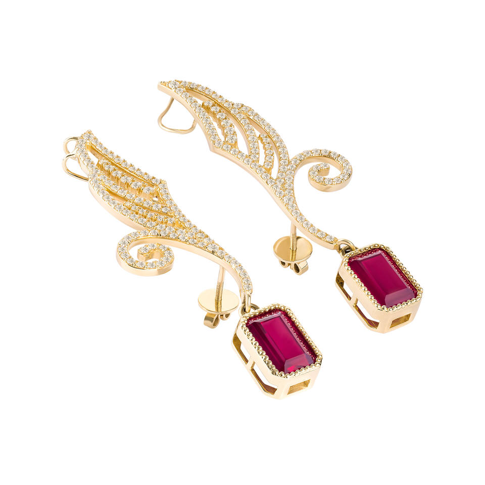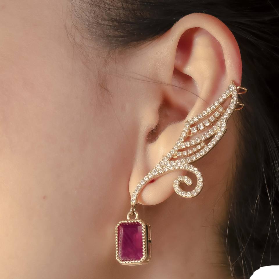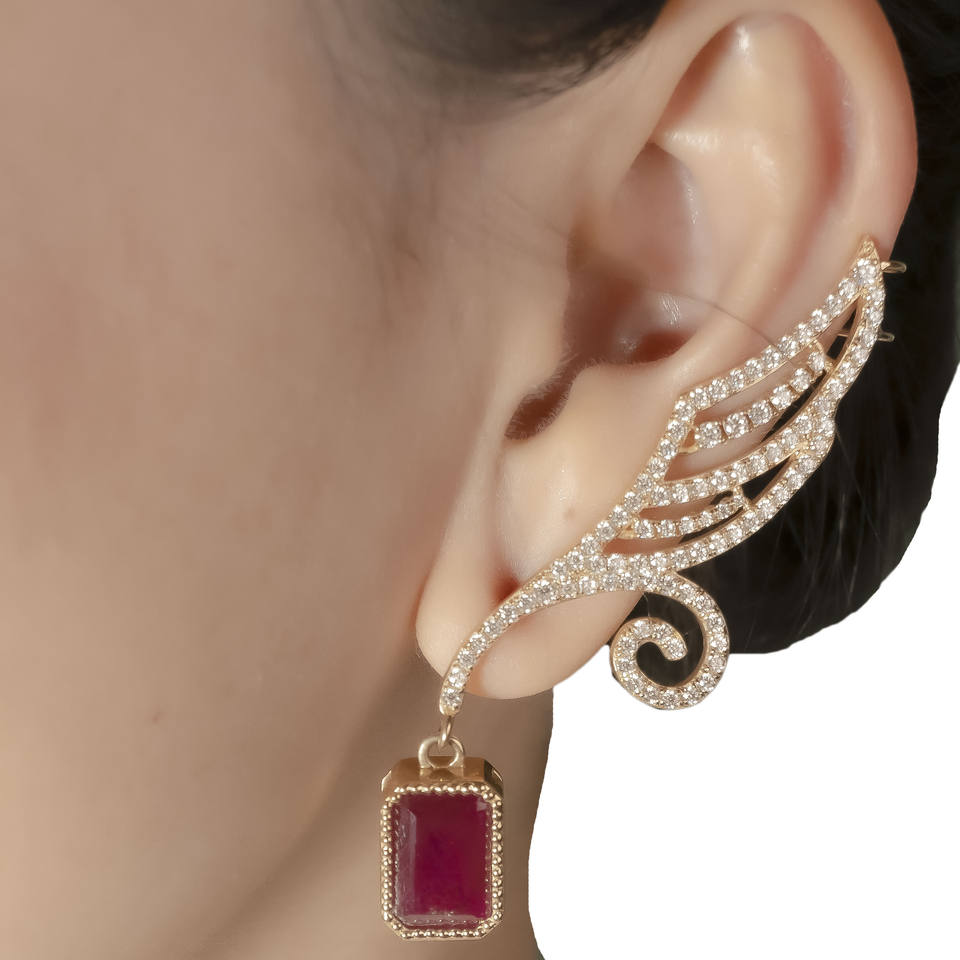เครื่องประดับสุดหรูต่างหูต่างหูต่างหูต่างหูต่างหูทับทิมรูปปีกแห่งโชค14K/ 18K เครื่องประดับทองจากอิตาลี