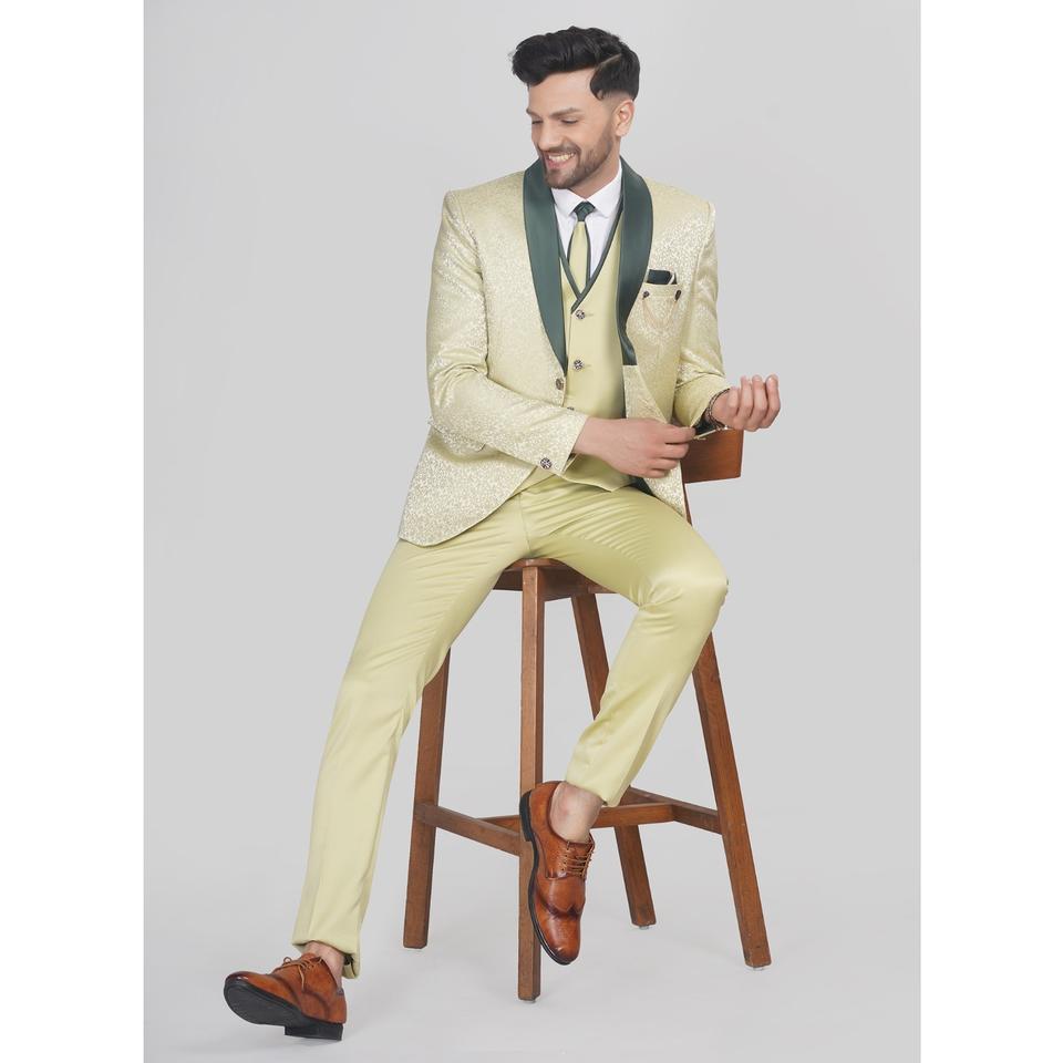 ชุดสูทผู้ชายสุดหรูขายดี สีพิสตา 5 ชิ้น ชุดสูทสำเร็จรูปสำหรับธุรกิจและโอกาสพิเศษ ลดราคา