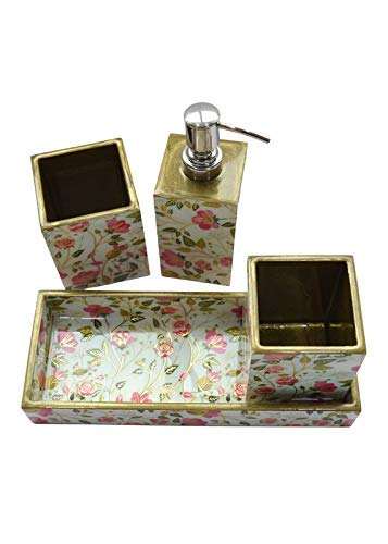 ชุดอุปกรณ์ห้องน้ำ MDF ขายดี 4 ชิ้น สำหรับห้องอาบน้ำที่บ้าน ที่วางแปรงสีฟัน ที่จ่ายสบู่ ถาดวางของในห้องน้ำ มีจำหน่าย