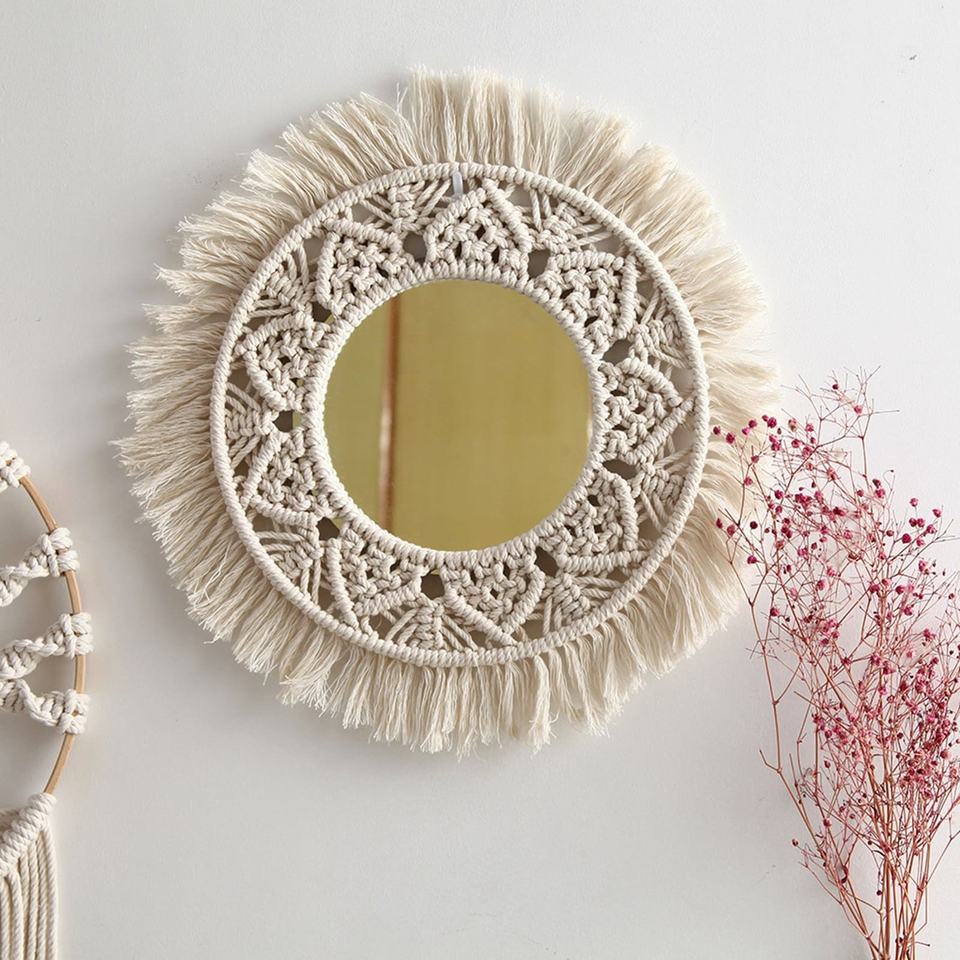 ที่ขายดีที่สุดกระจก Macrame แขวนผนังกระจกห้องนอนกลม Boho ออกแบบตกแต่งห้องทําด้วยมือจากเวียดนาม