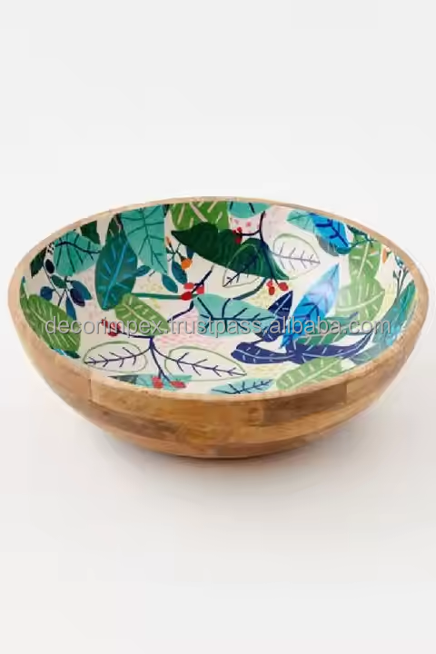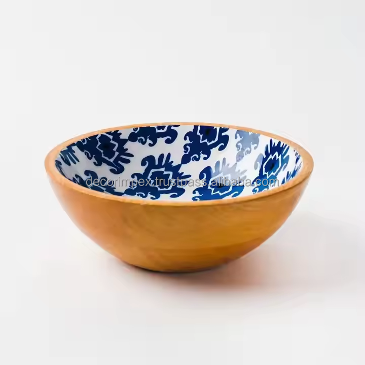 ชามไม้มะม่วงทรงกลมพร้อมดีไซน์พิมพ์ลายสำหรับเครื่องครัวอเนกประสงค์