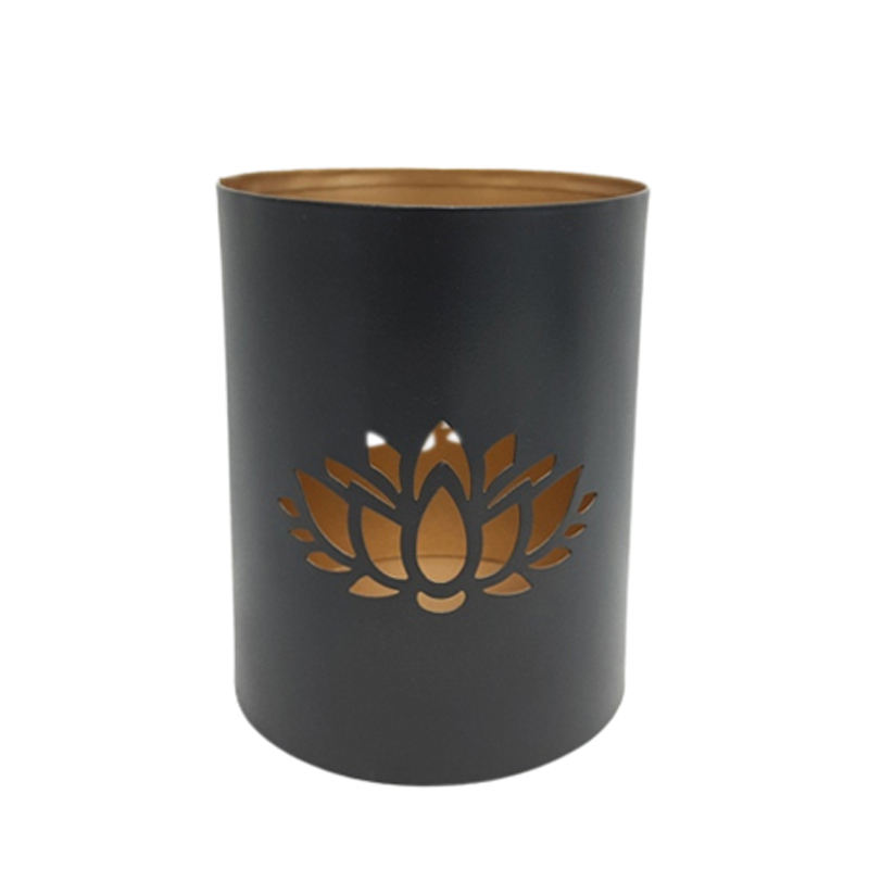 ที่ใส่เทียนทรงกลมสีดำดีไซน์ดอกบัวทำมือปรับแต่งเองได้