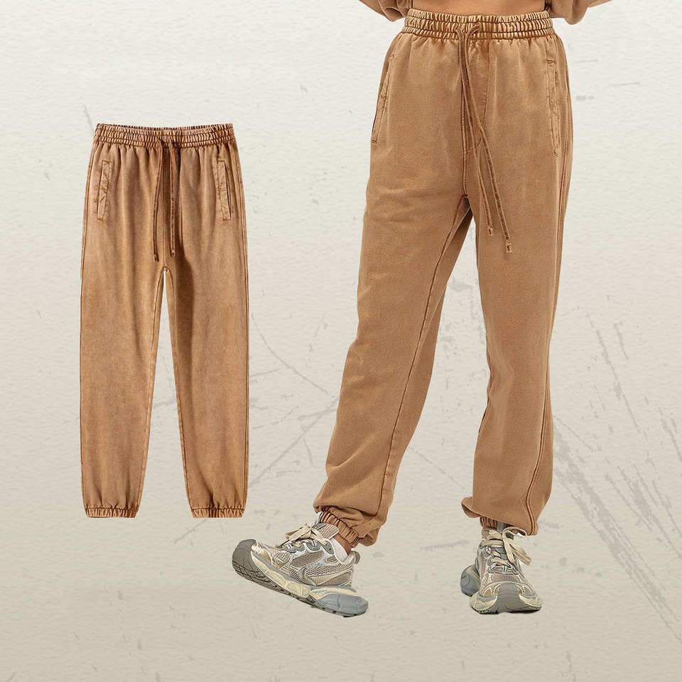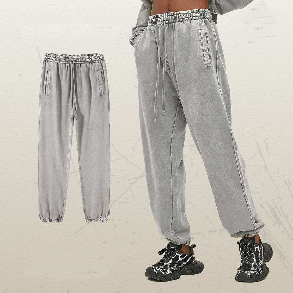 กางเกงขายดีสำหรับผู้ชาย กางเกงวอร์มสไตล์สตรีทแบบซักล้าง ผ้าฝ้าย 100% น้ำหนักเบา สวมใส่สบาย ทรงขาตรง กางเกงผ้าเทอร์รี่ฟลีซแบบซักล้าง