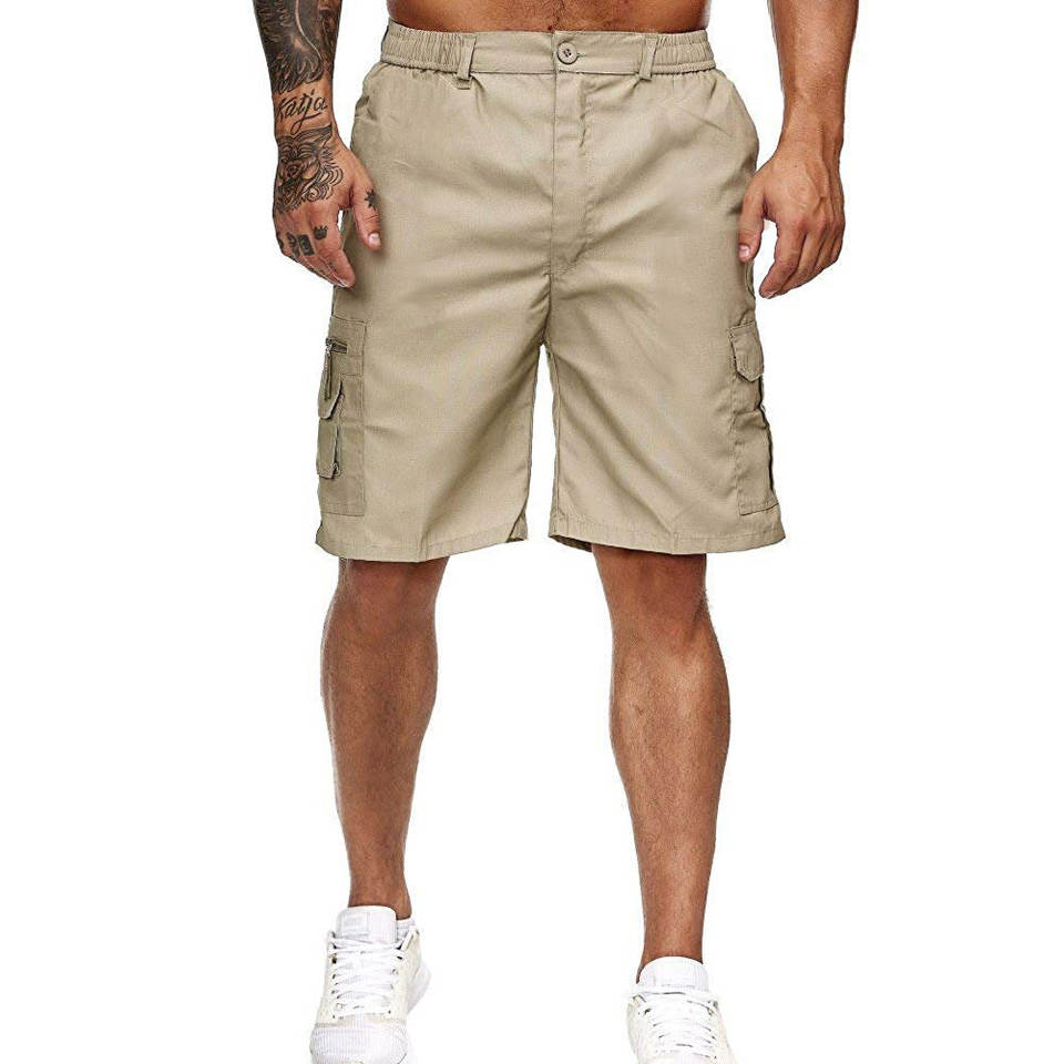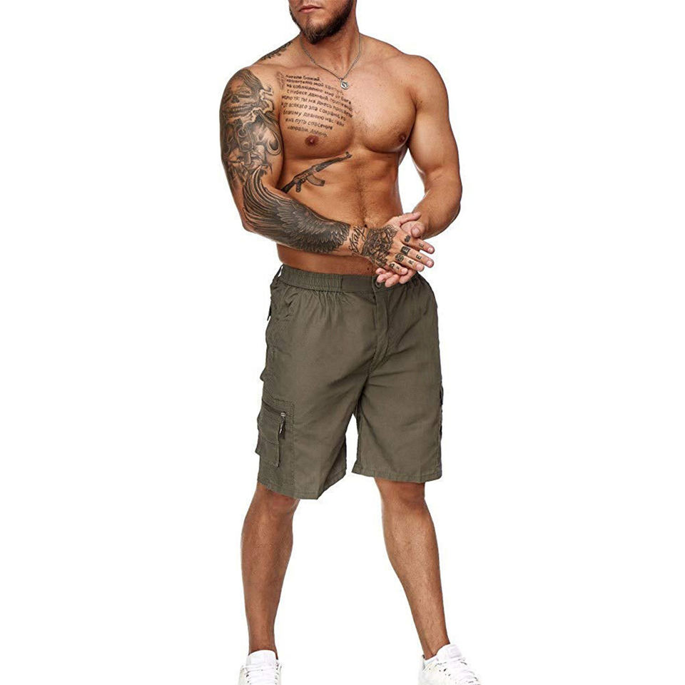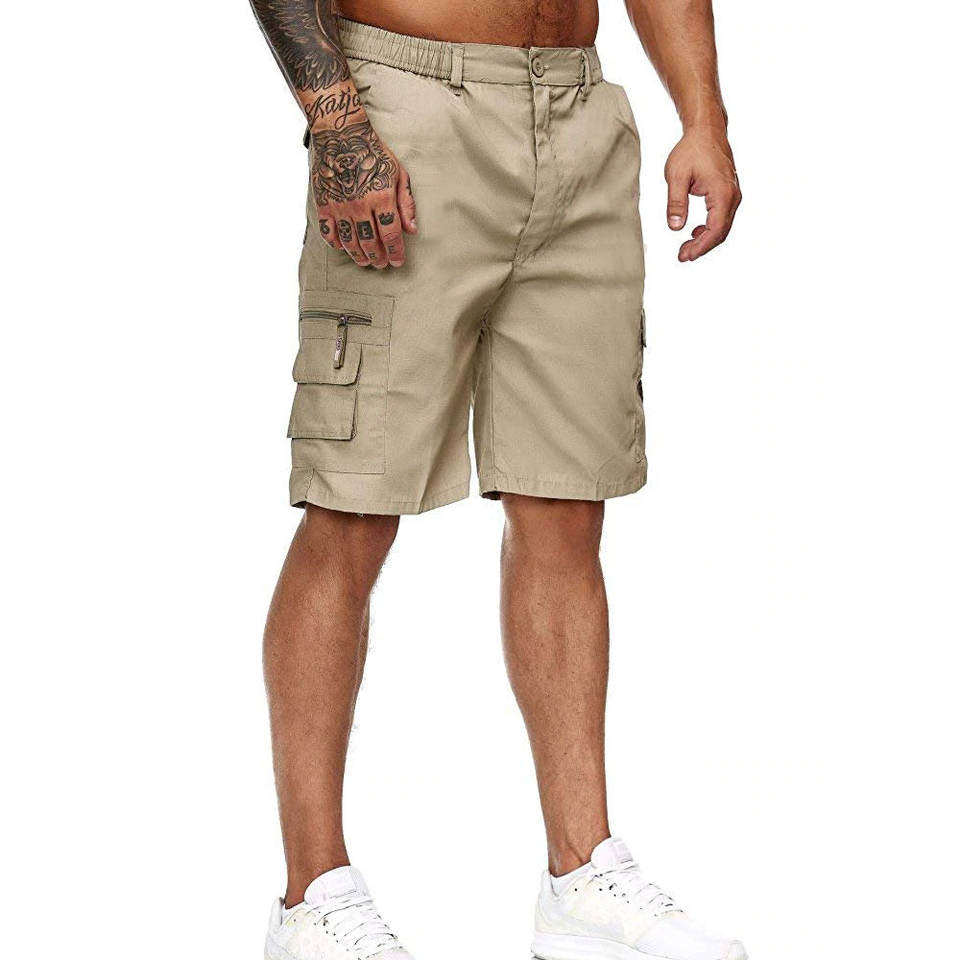 กางเกงขาสั้นผ้าฝ้ายแบบลำลองสำหรับผู้ชายกางเกงขาสั้นผ้าย้อมสีล้วนมีกระเป๋าด้านข้างทรงหลวม