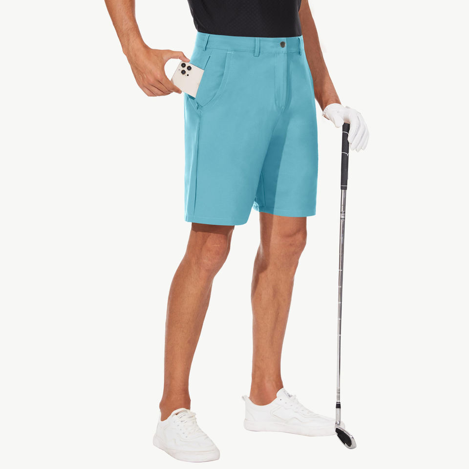 กางเกงขาสั้นกอล์ฟลำลองสำหรับผู้ชายขายดีที่สุด แห้งเร็ว ระบายความชื้น สีพื้น โลโก้และขนาดสั่งทำได้ เป็นมิตรกับสิ่งแวดล้อม