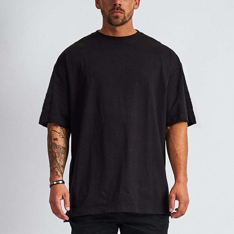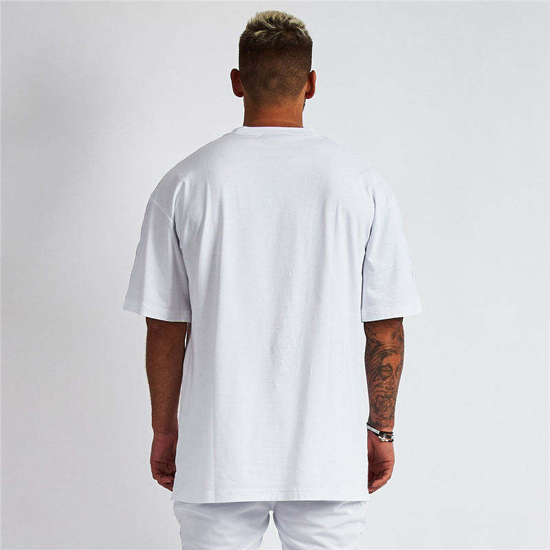 เสื้อยืดแขนสั้นผ้าคอตตอนถักสำหรับผู้ชายทรงโอเวอร์ไซส์สำหรับพิมพ์ลายพัฟออกแบบได้ตามต้องการ