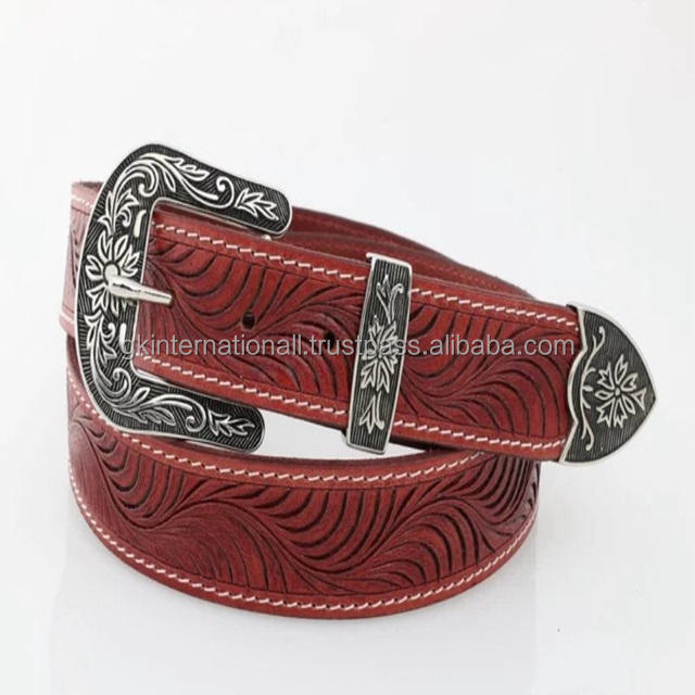 เข็มขัดหนังแท้แบบตะวันตกสำหรับผู้ชายสีน้ำตาลดำหรือสีน้ำตาลเข้มพร้อมหัวเข็มขัด3ชิ้น