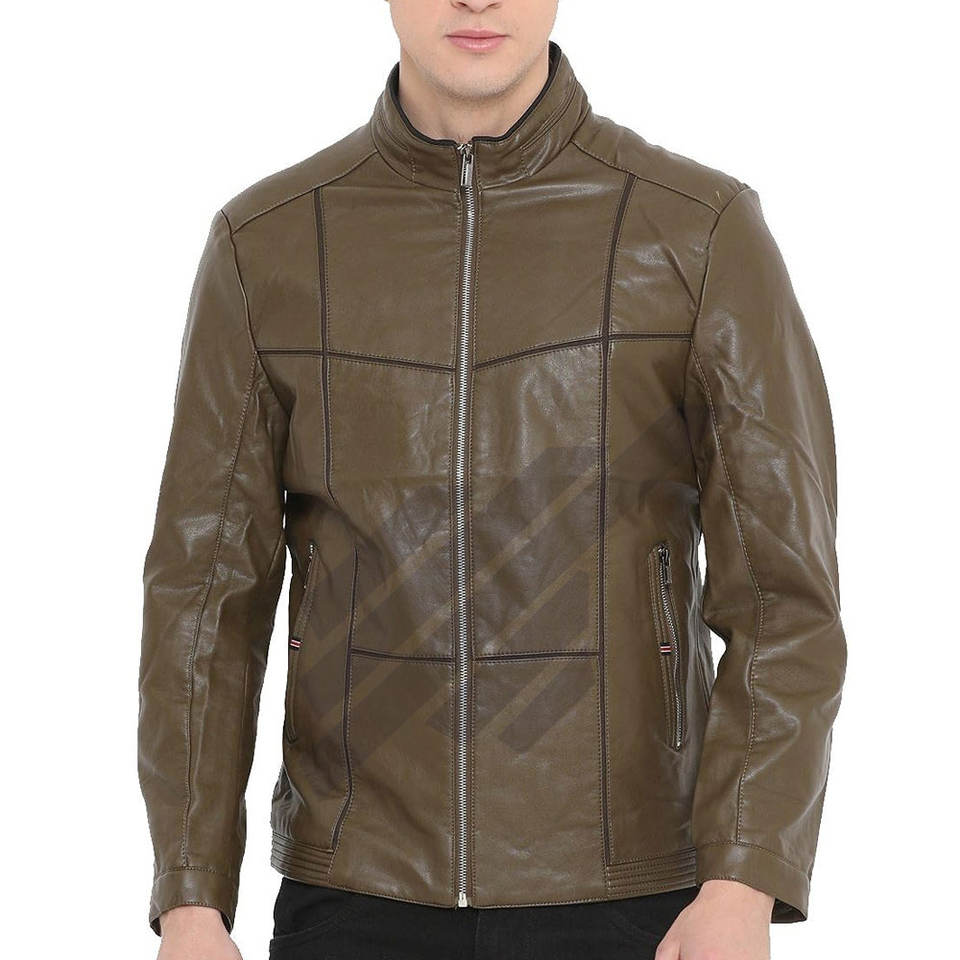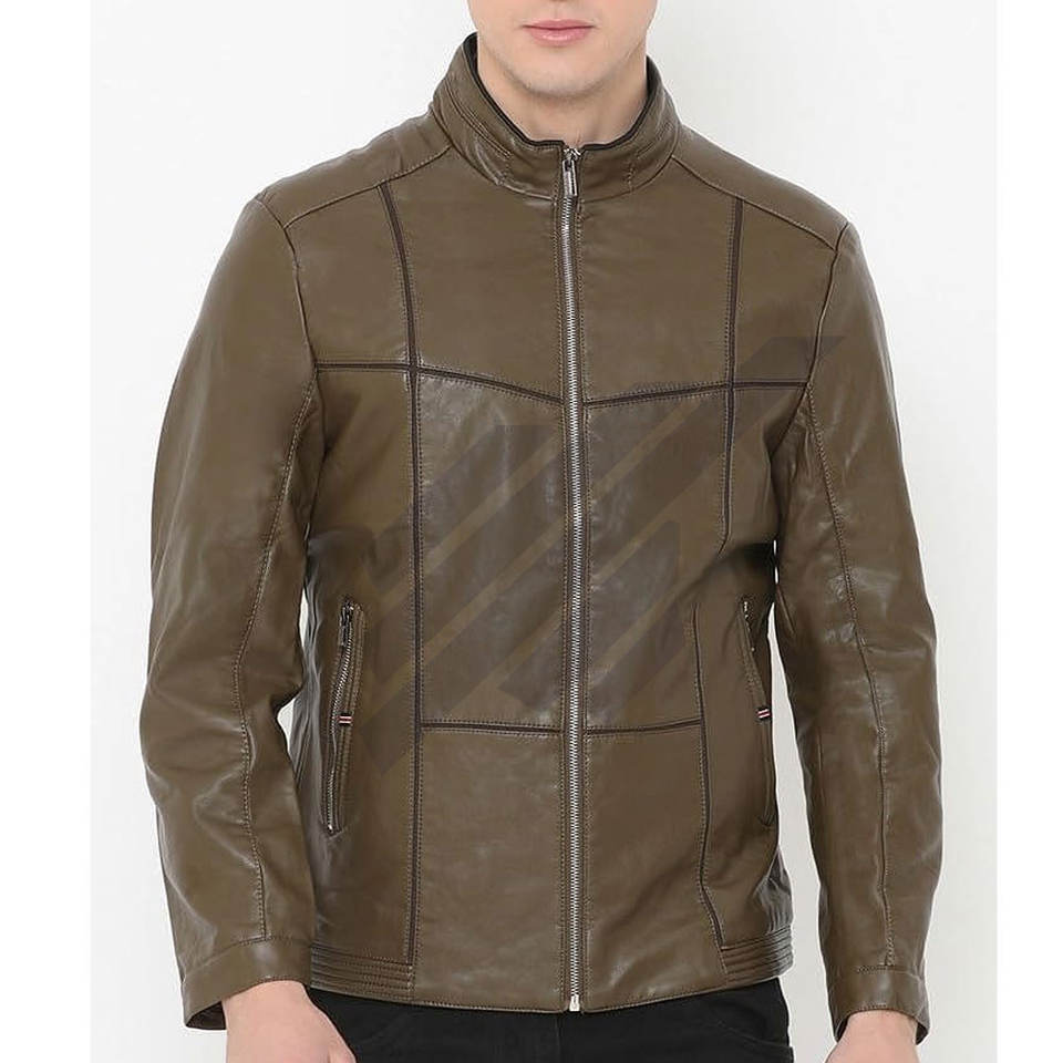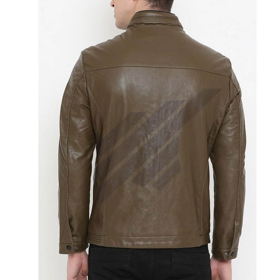 แจ็กเก็ตหนังผู้ชายกันลมและกันน้ำมีปกตั้ง