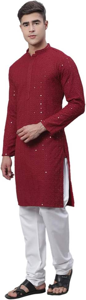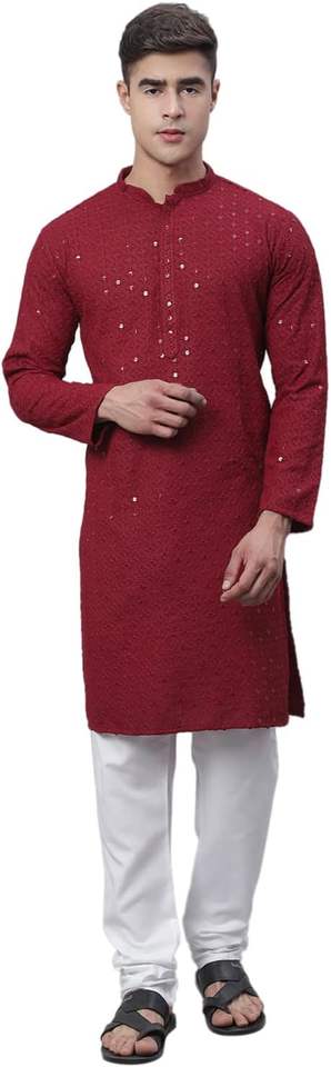 ชุดเสื้อผ้าชาลวาร์ คามีซผู้ชายขายดี ผ้าไหมเรยอน ตัดเย็บสำเร็จ พร้อมใส่ไปงานปาร์ตี้ ดีไซน์ทันสมัย สีแดง ความยาวระดับเข่า